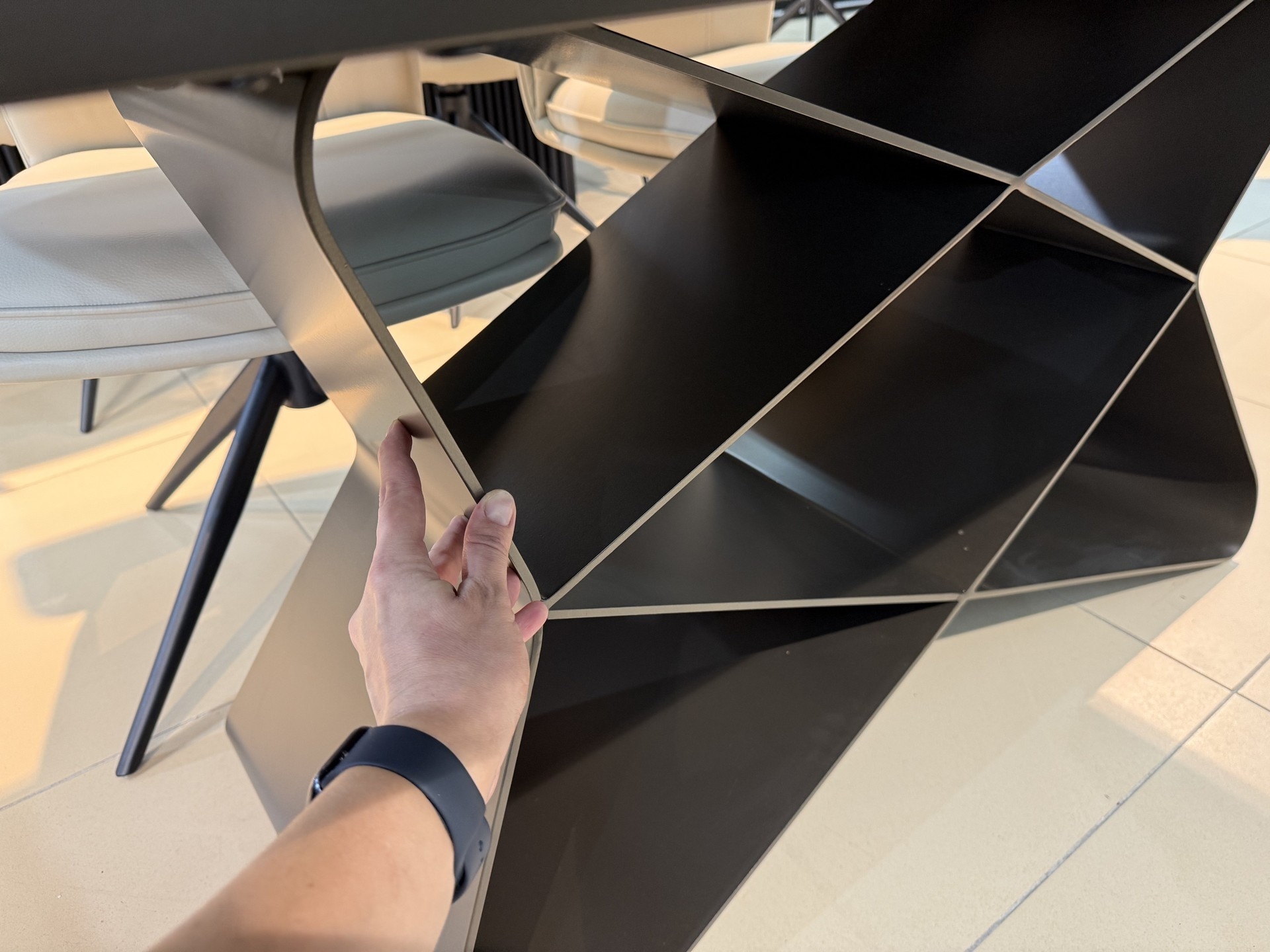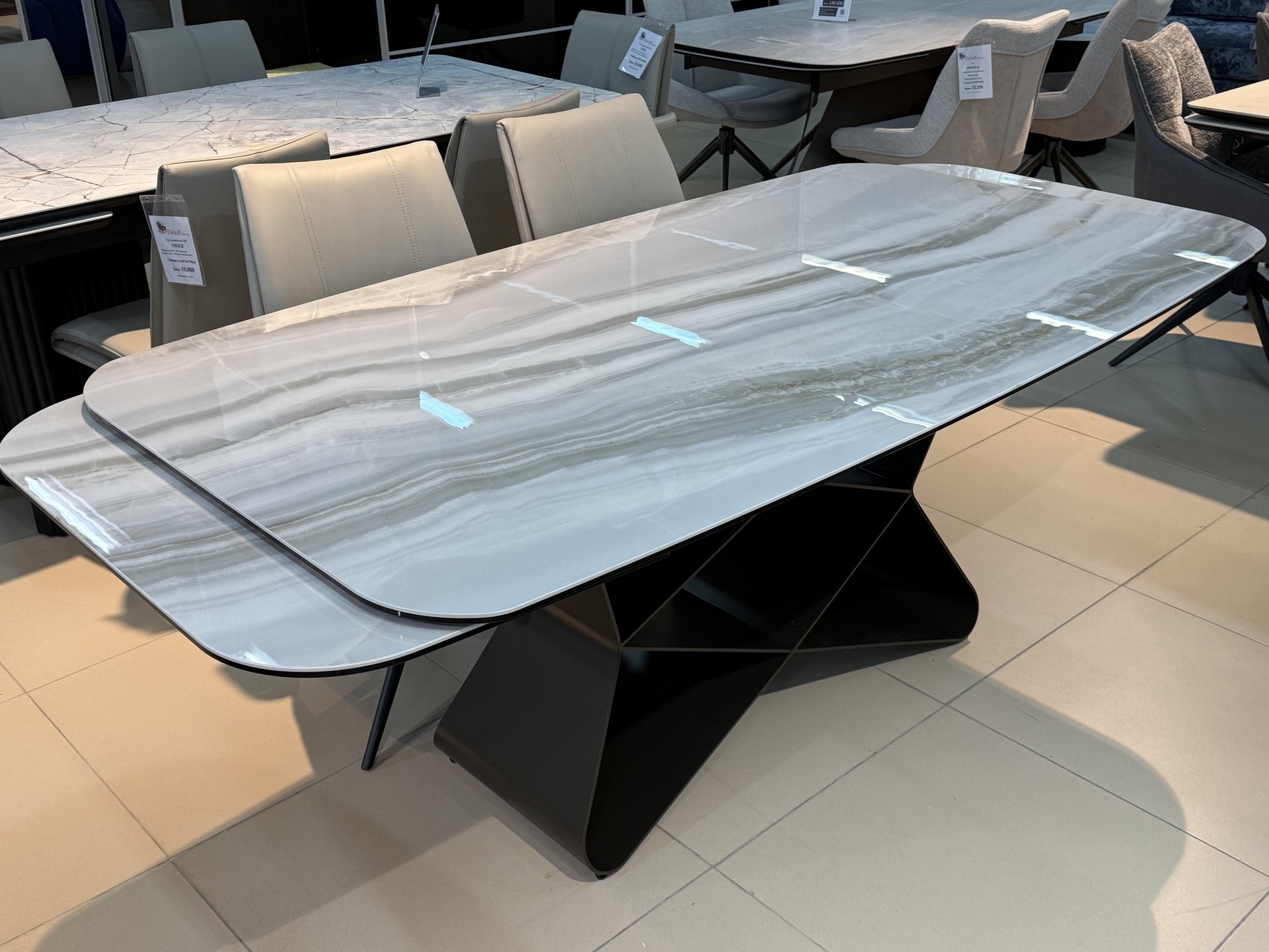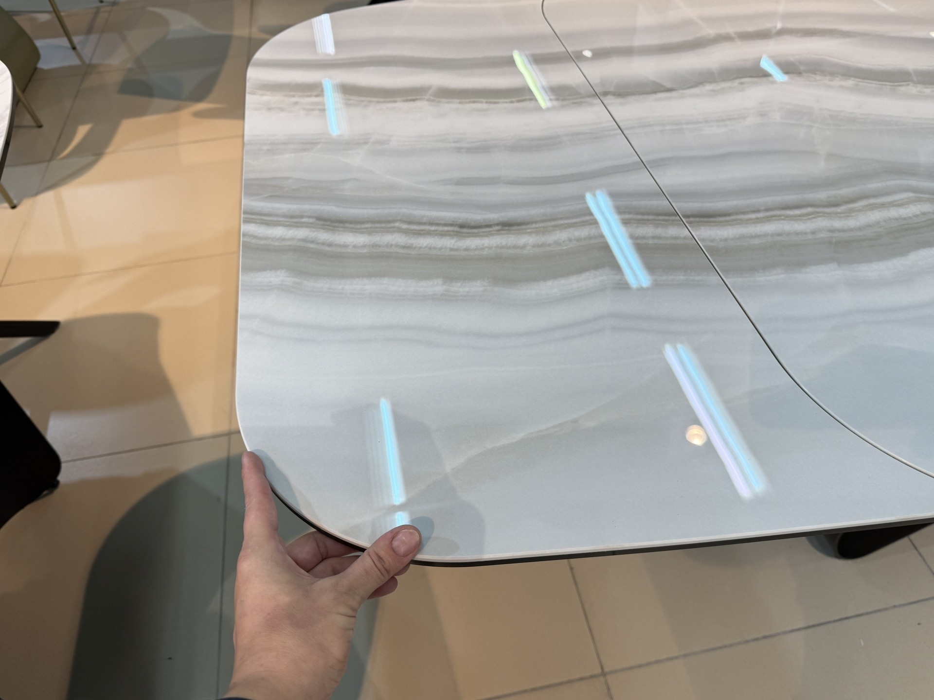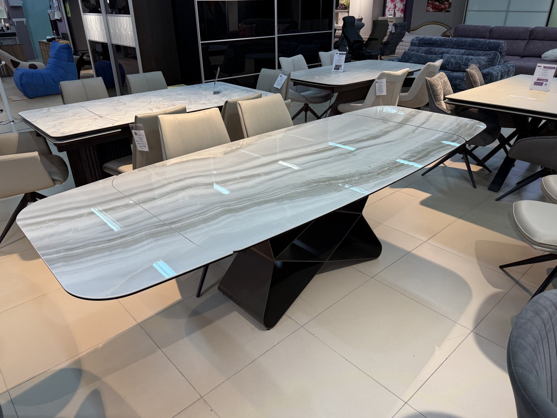 Стол с глянцевой, керамической столешницей станет центральным элементом пространства. Двухсторонняя торцевая система раскладывания, две независимые вставки по краям по 40 см, позволяют увеличить длину столешницы до 220 или 260 см при необходимости.