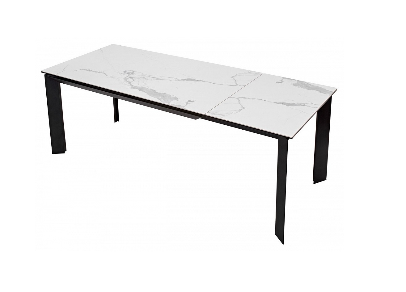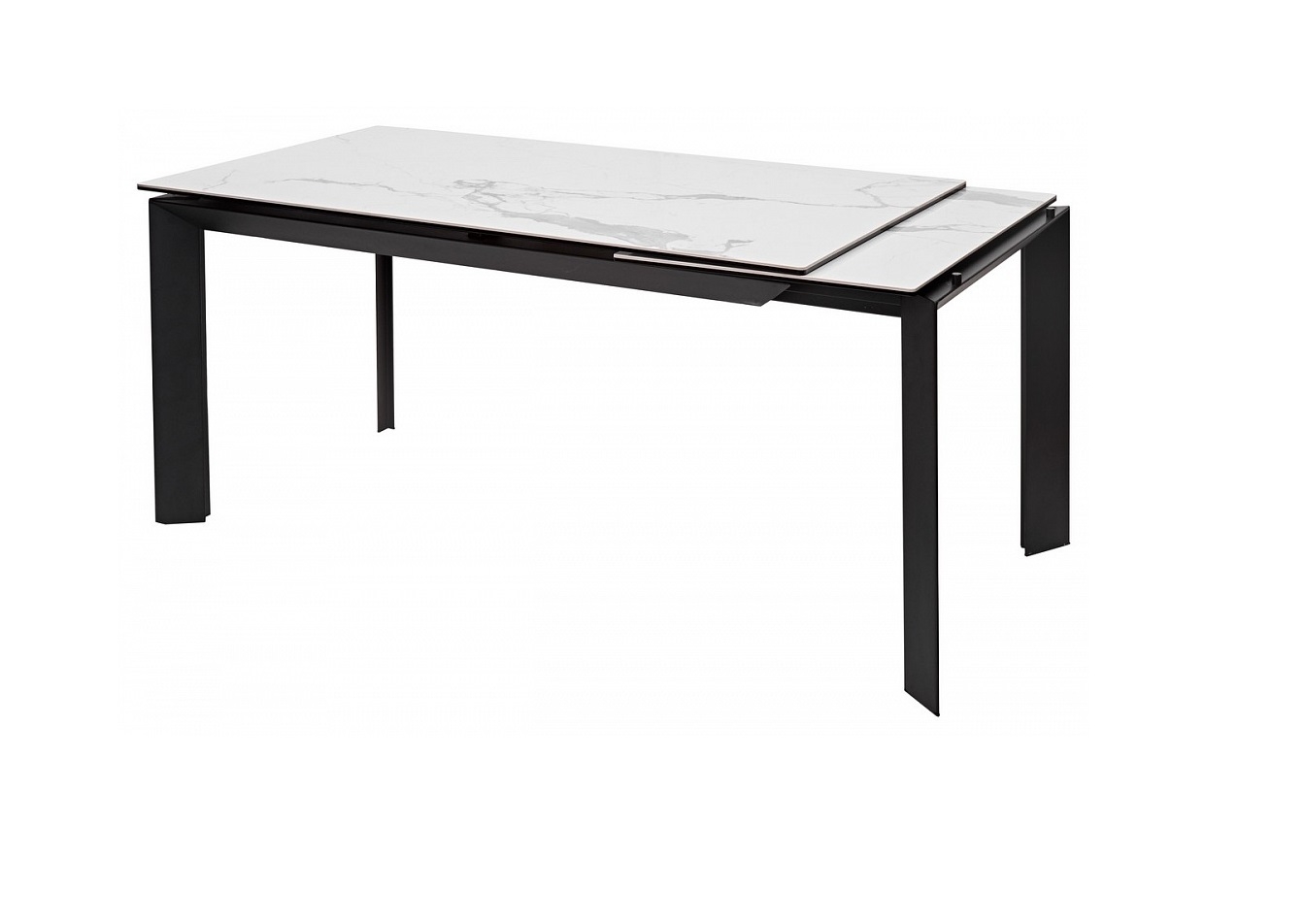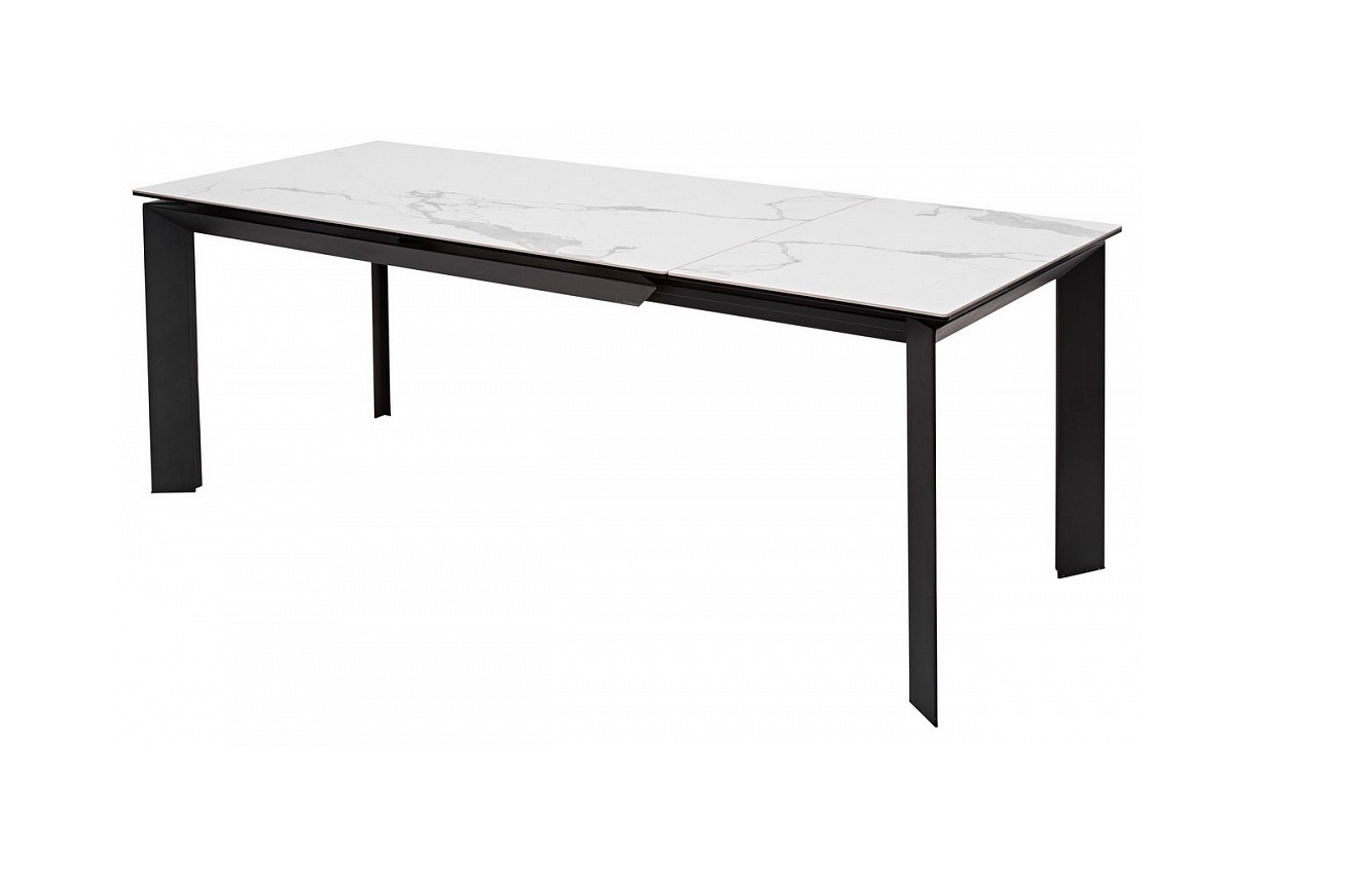 Вставка стола (60 см) выдвигается с торца вместе с ножками со встроенными колесами, не царапающими пол, что позволяет быстро и легко увеличить длину столешницы до 200 см. Столешница выполнена из керамики на стекле, толщина столешницы 13,5 мм (5,5 мм керамика + 8 мм стекло), не царапается, не впитывает загрязнения, термостойкая.