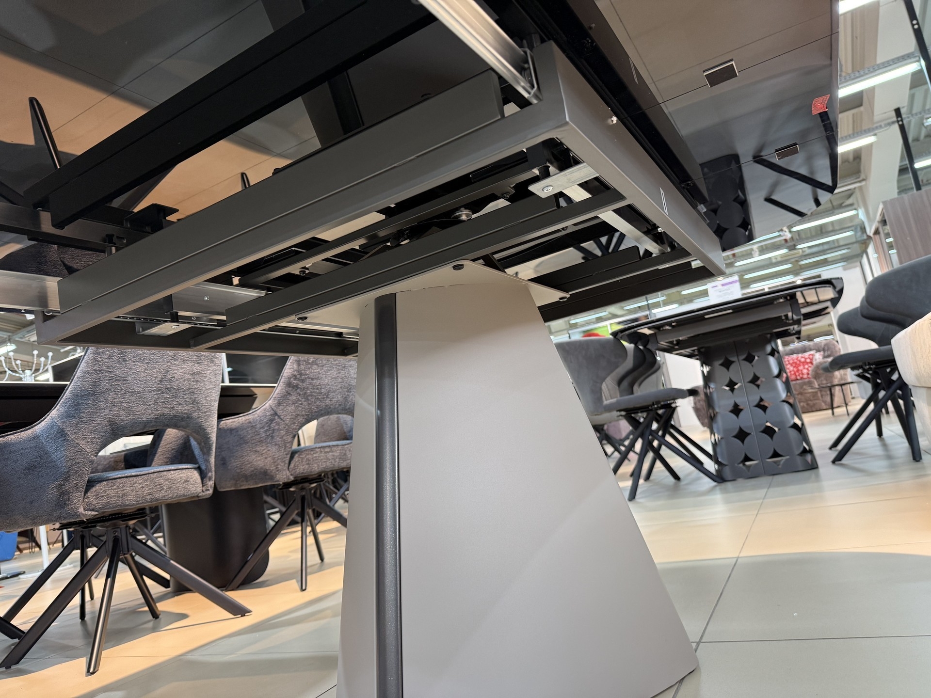 Автоматическая система раскладывания, вставка 34,4 см, позволяет увеличить длину столешницы до 166,4 см при необходимости.