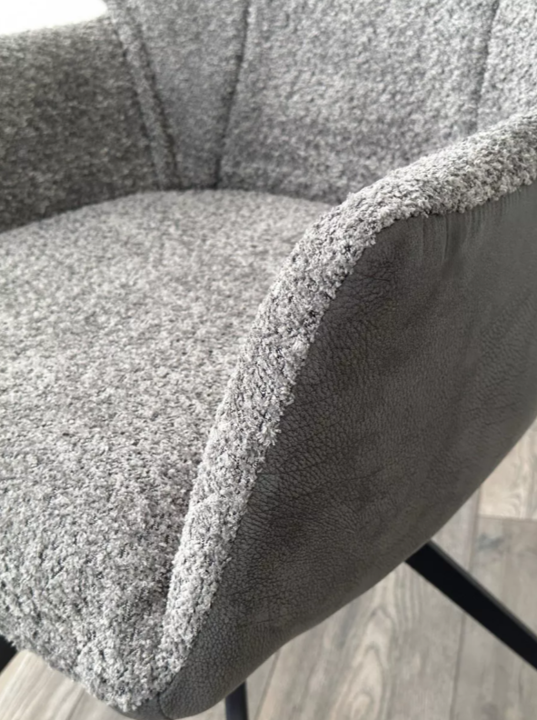 Обивка комбинированная, выполнена из ткани и букле, которая придает изделию современный, элегантный вид.