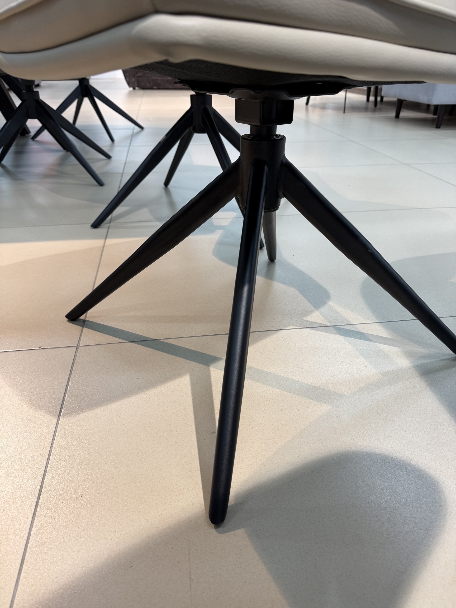 Ножки стула выполнены из металла, что придает прочность и надежность кострукции, и выкрашены в черный цвет.